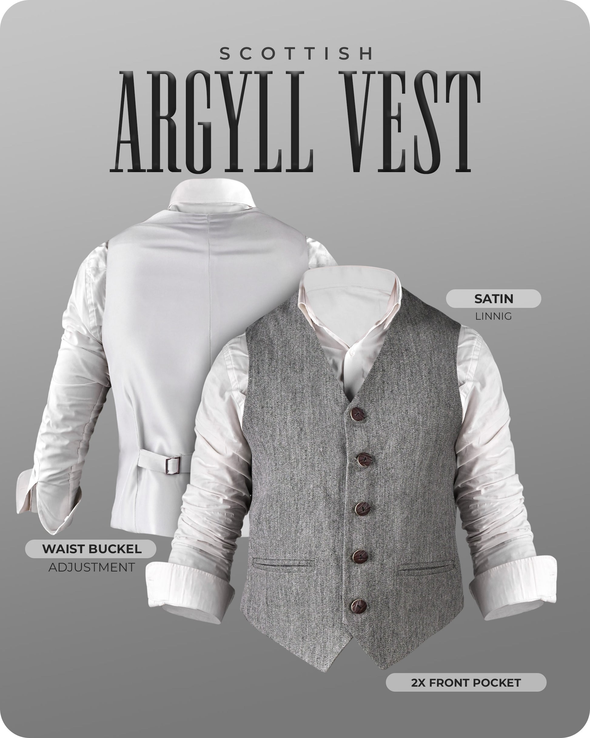 Celebrate heritage. Dress with distinction. Own the moment in the Grey Argyll Vest by Highland Redstone – where tradition meets tailored excellence.