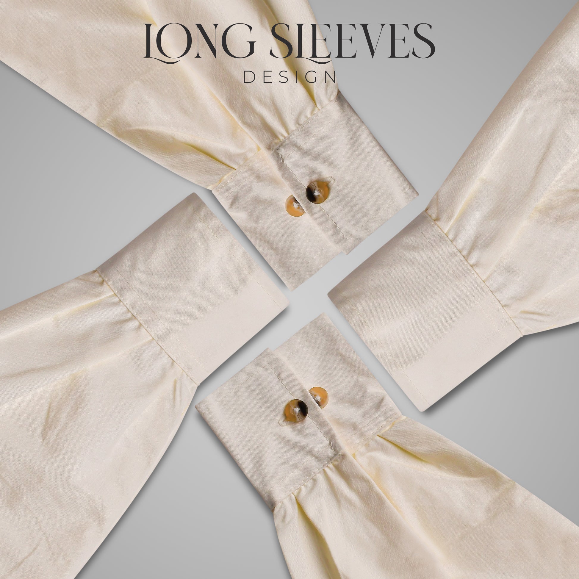 • Long sleeves with gathered cuffs add a touch of vintage elegance