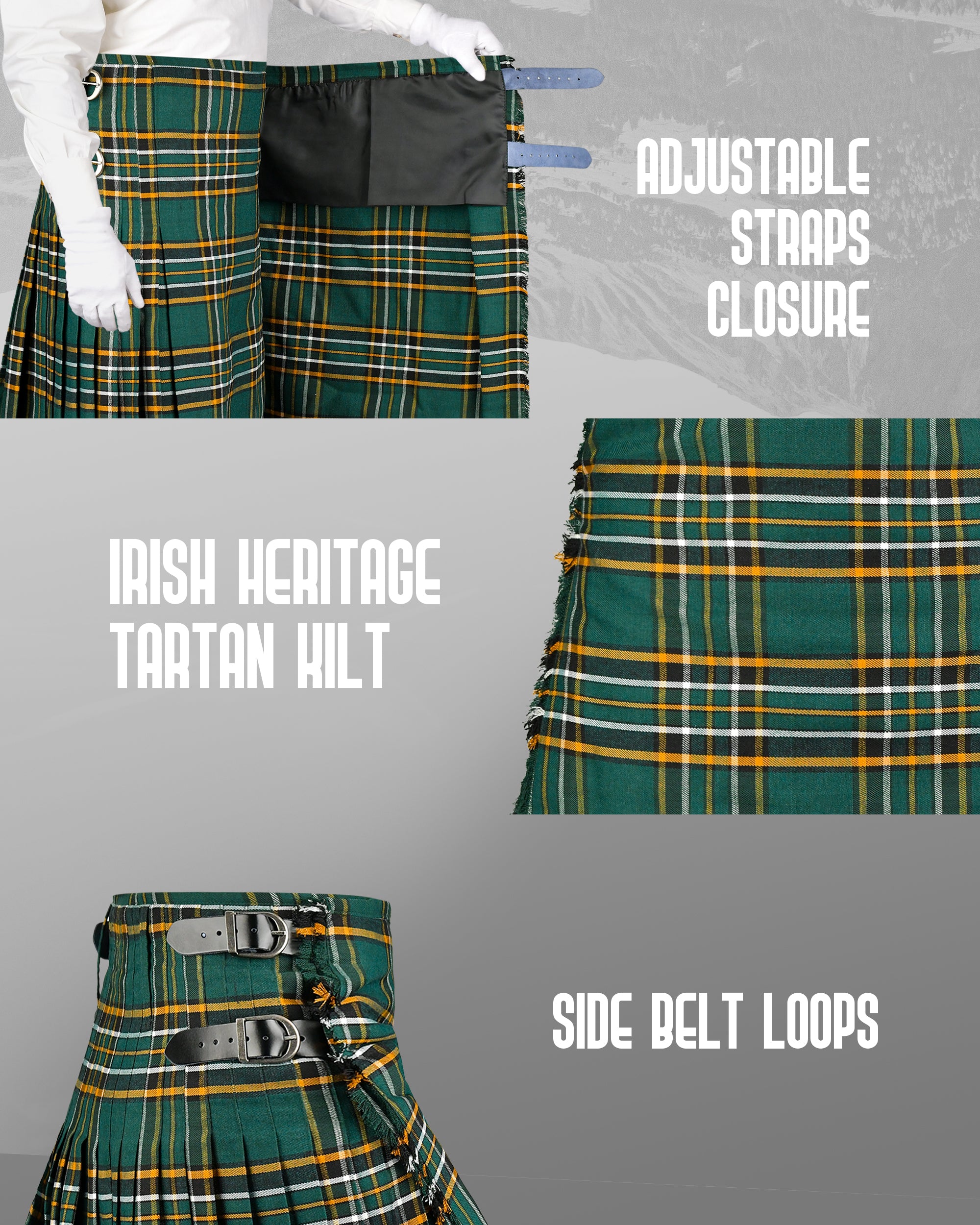 CelebrateScottish heritage with our Irish HeritageTartan Kilt.