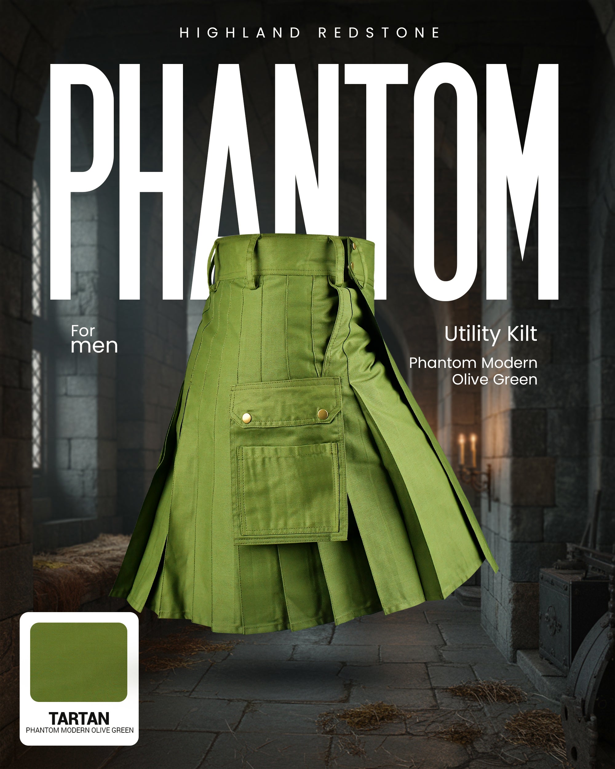 Upgrade your wardrobe with the Phantom Modern Olive Green Utility Kilt, a perfect fusion of Scottish heritage, rugged functionality, and modern style. Designed for outdoor activities, workouts, festivals, and casual fashion, this men's utility kilt offers superior comfort, durability, and versatility.