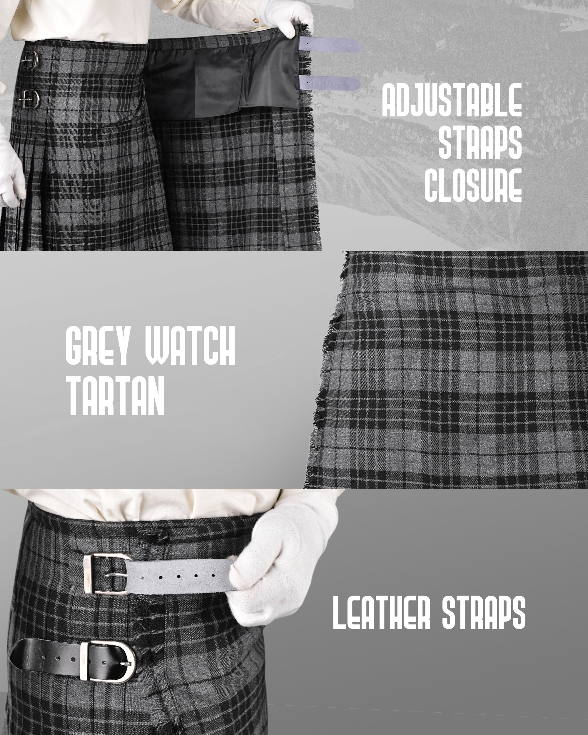 Highland Redstone 16oz Traditional Scottish Kilt – Gray Watch Tartan | 8 Yard Premium Acrylic Wool | 24 Inch Luxury Highland Kilt