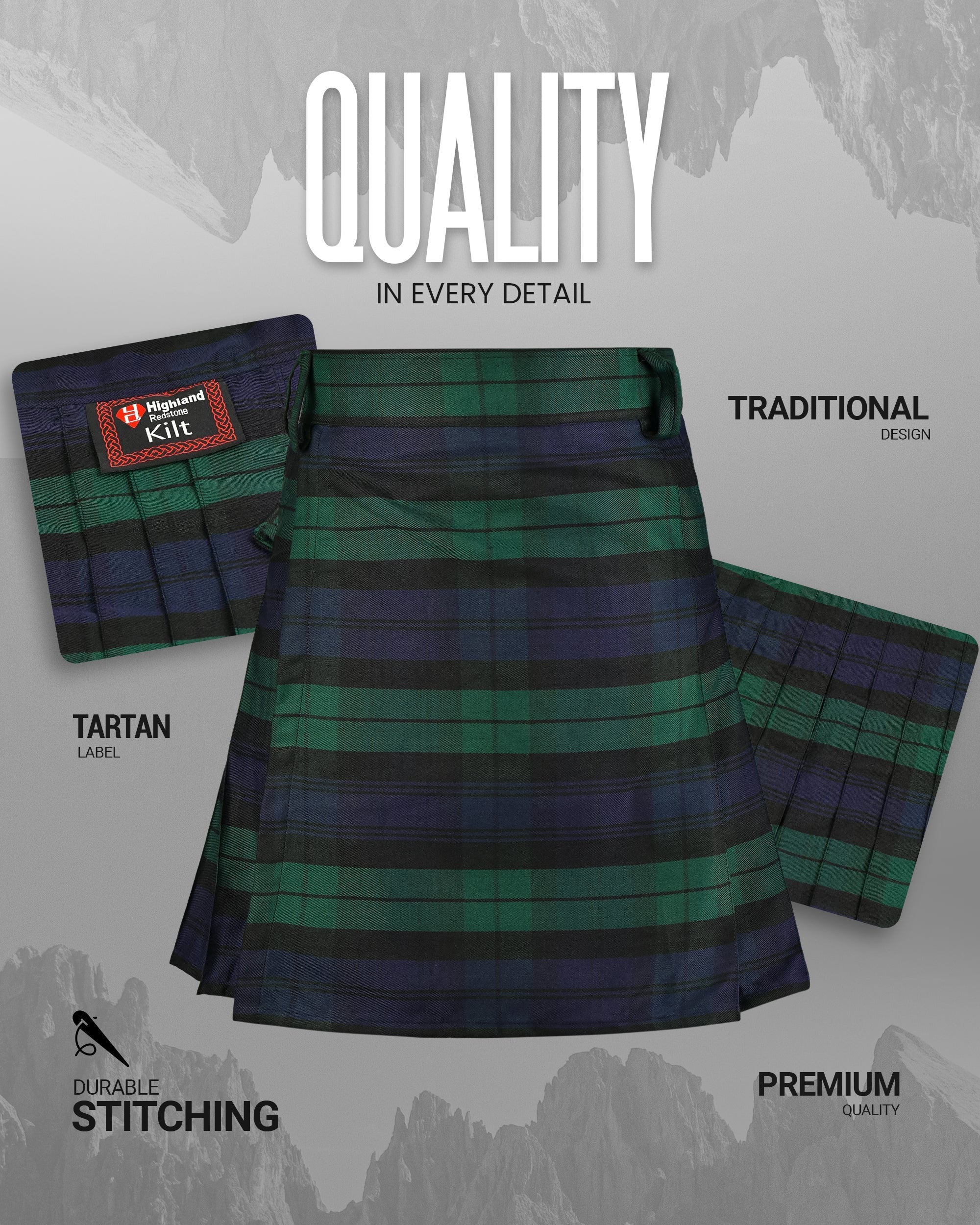 Embrace tradition with confidence choose the Black Watch Tartan Kilt by Highland Redstone.