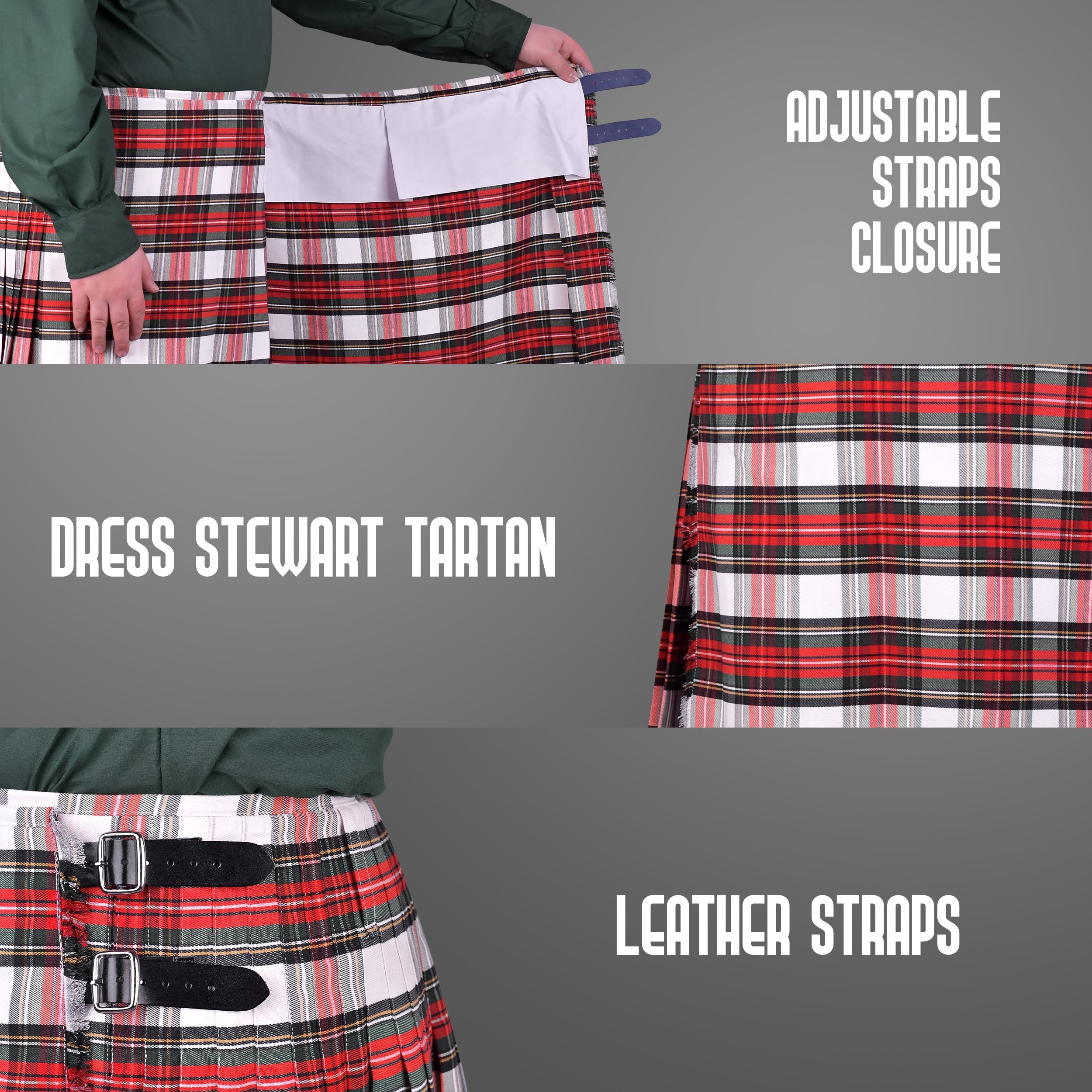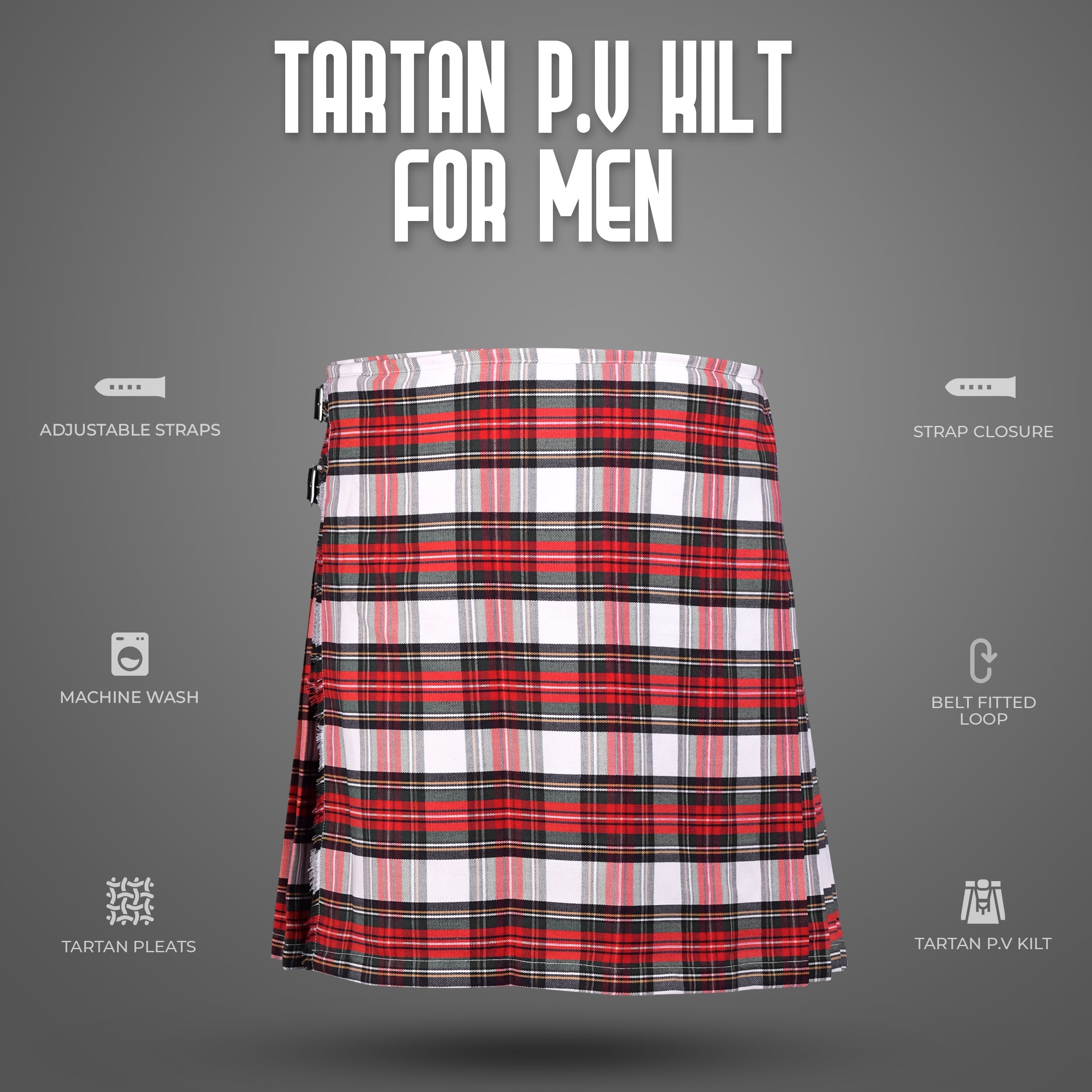 Kilt for Men I Dress Stewart Tartan Kilt Polyviscose 8 Yard Traditional Men Kilt