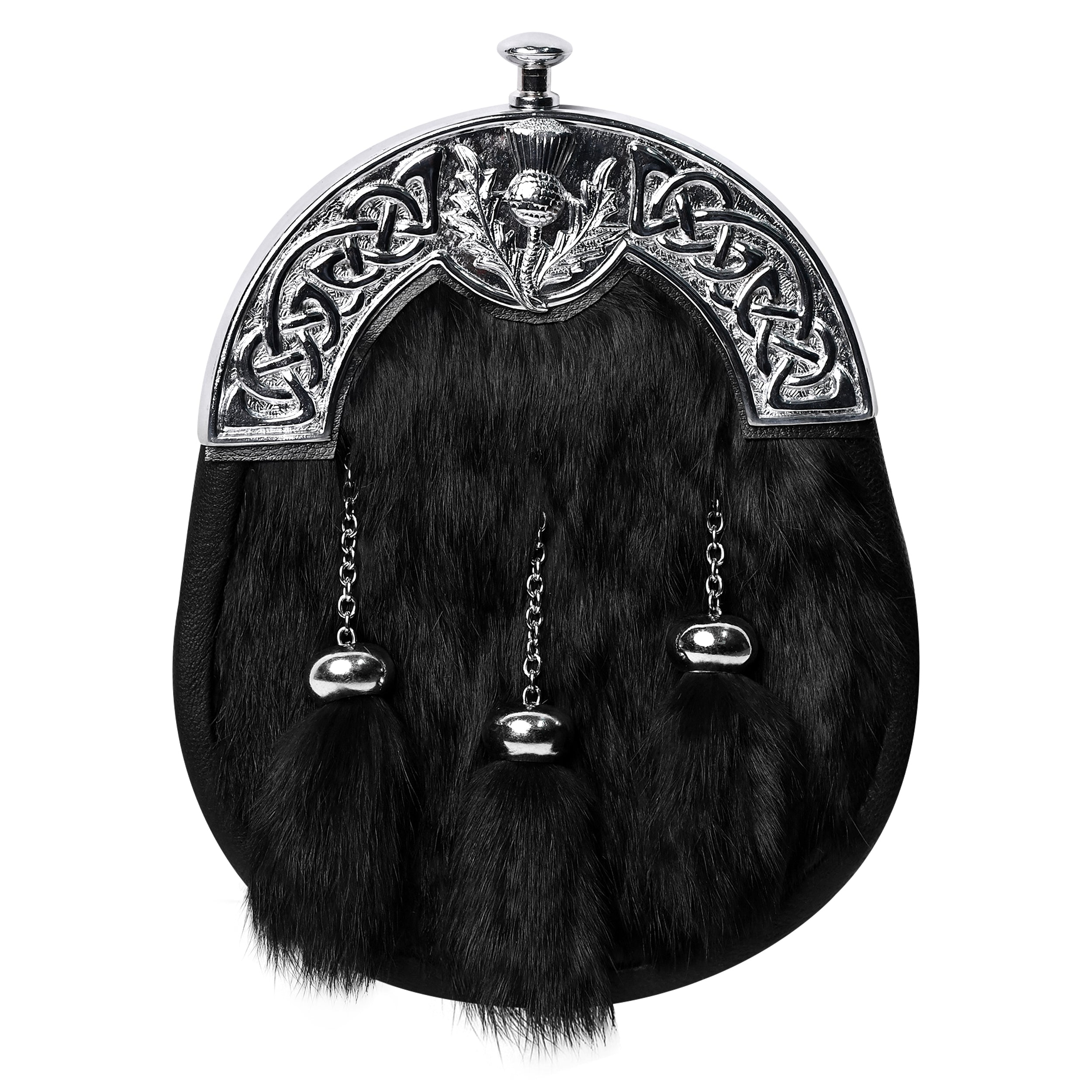 Formal Black Rabbit Fur Sporran with Thistle Chrome Cantle