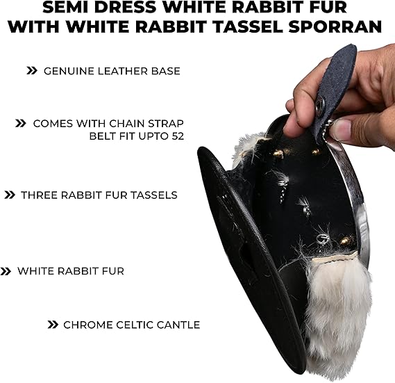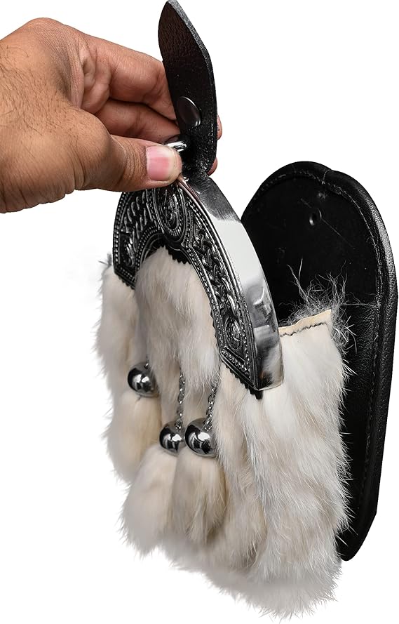 Add timeless elegance to your Highland outfit with this Formal White Rabbit Fur Sporran, designed to complement traditional kilts. Crafted...