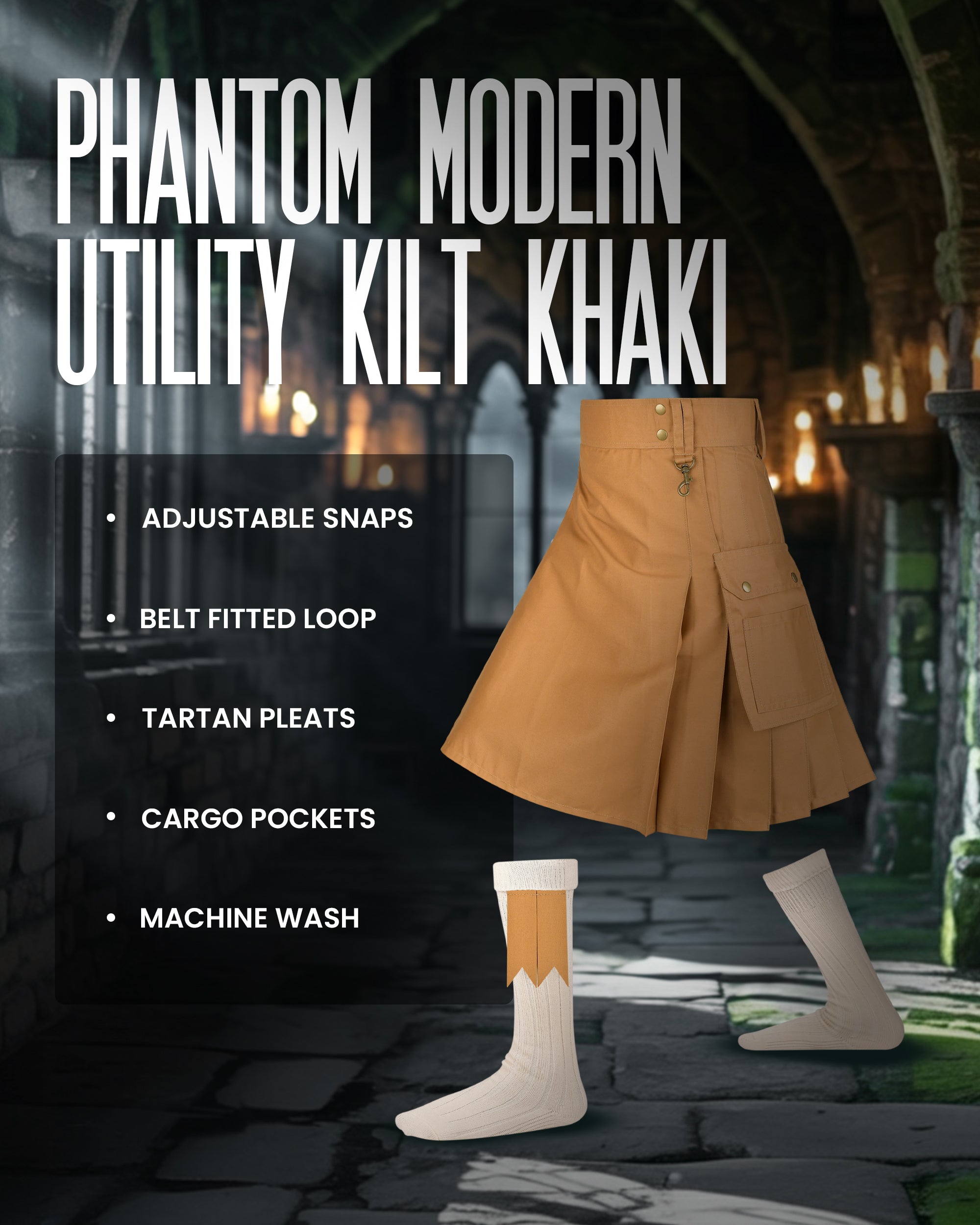 Upgrade your wardrobe with the Phantom Modern Khaki Utility Kilt, a perfect fusion of Scottish heritage, rugged functionality, and modern style. Designed for outdoor activities, workouts, festivals, and casual fashion, this men's utility kilt offers superior comfort, durability, and versatility.