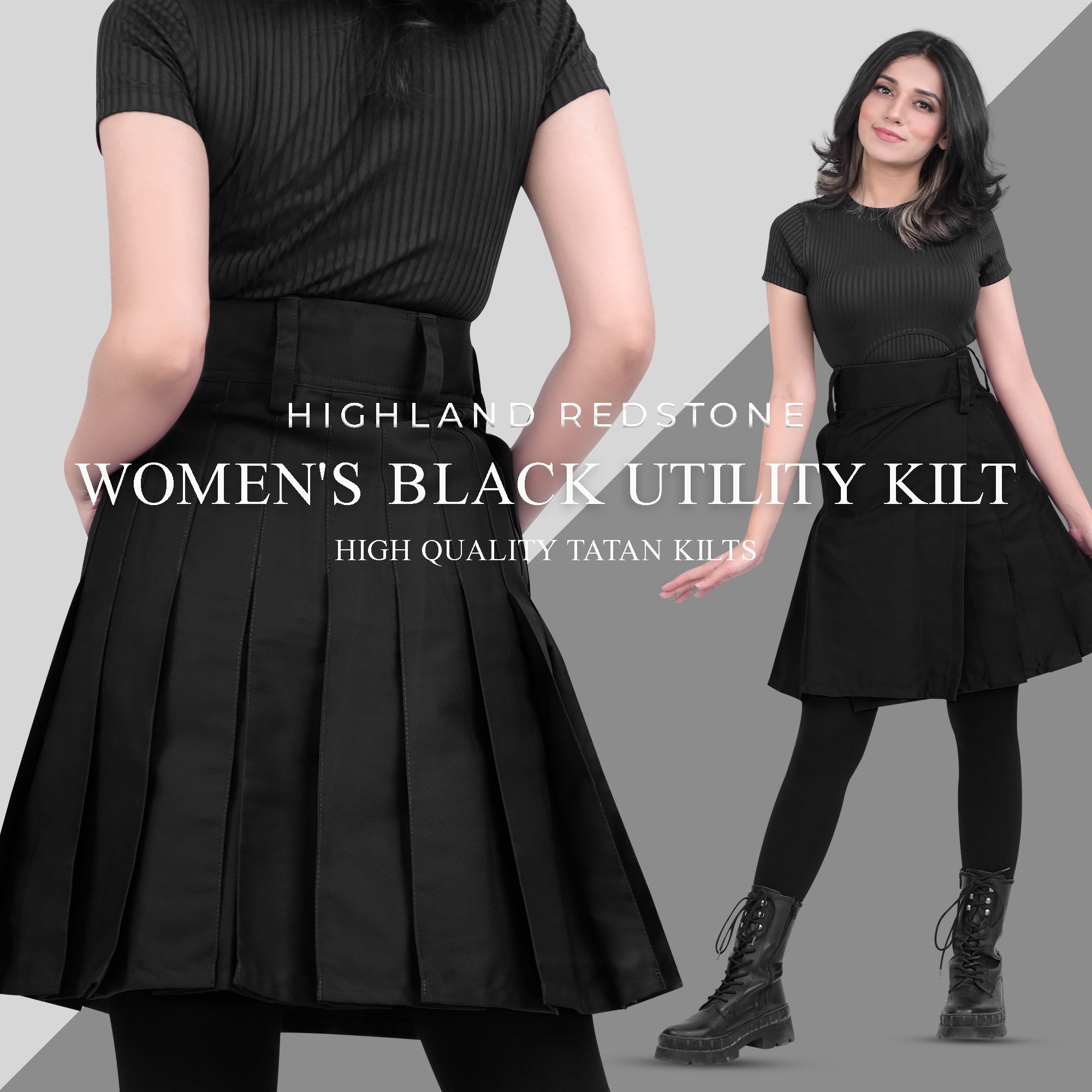 Elevate your wardrobe with the Raven Black Women Kilt , a stylish black kilt for women designed for both fashion and function. This versatile women's kilt blends classic and contemporary styles, making it a perfect choice for those who love a dark fashion aesthetic with a modern twist.