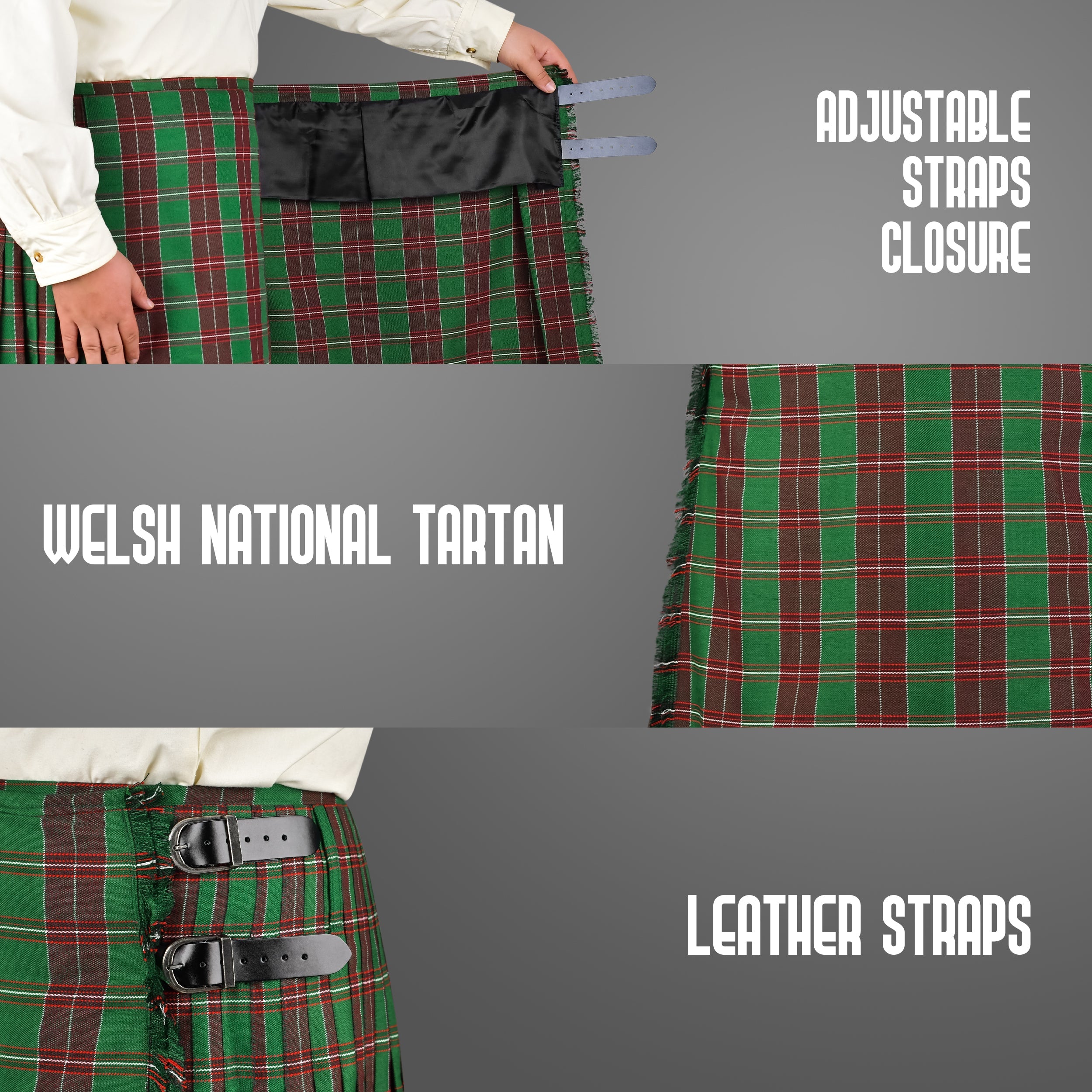 Kilt for Men I Welsh National Tartan Kilt Polyviscose 8 Yard Traditional Men Kilt