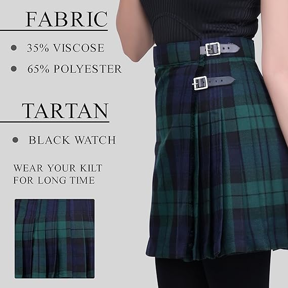 Woman Plaid Kilt - Black Watch Tartan Kilt - Premium Quality & Timeless Style
